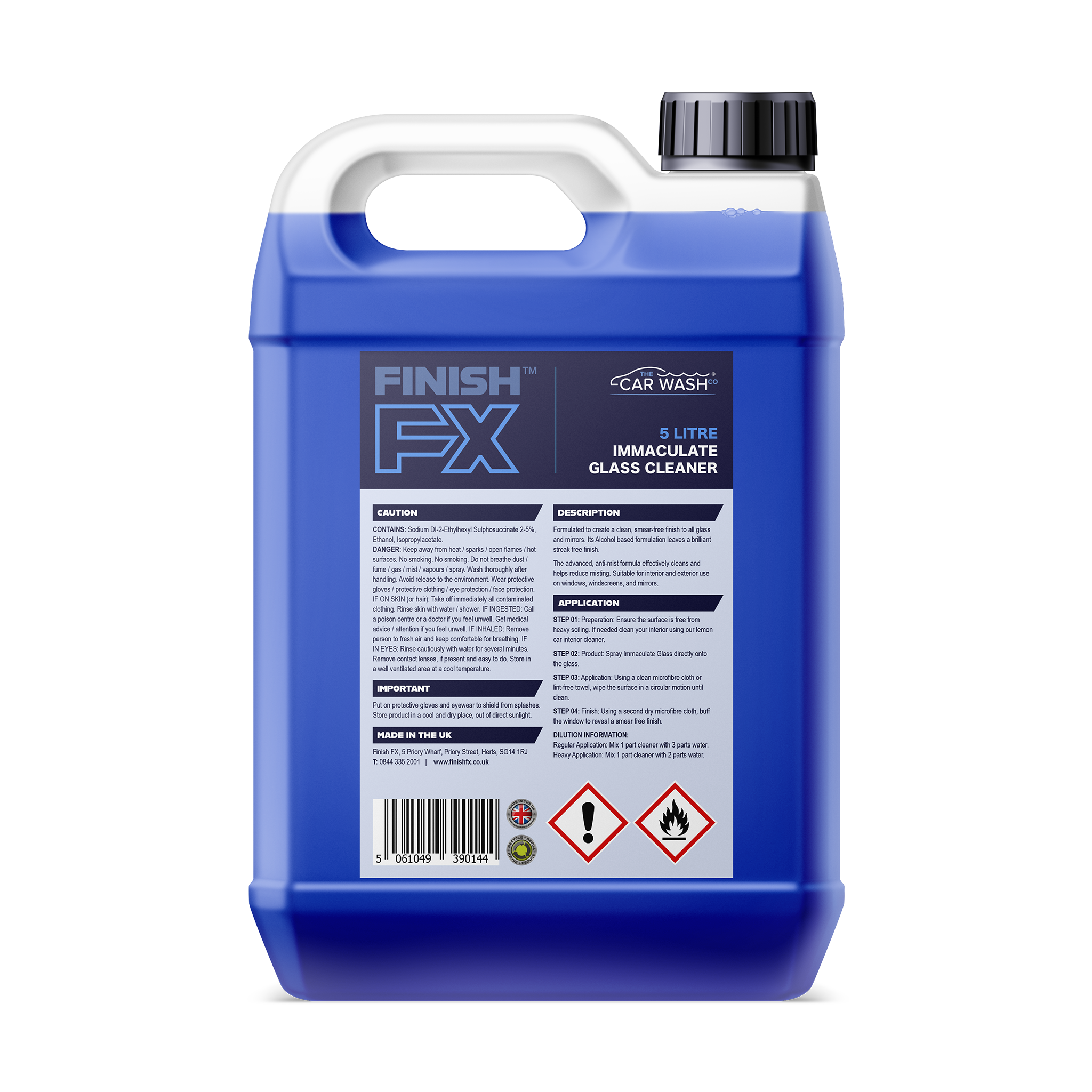 Safe for use on windows, mirrors, windshields, and other glass surfaces, its fast-acting formula ensures maximum clarity and a spotless finish. Perfect for automotive detailing, home use, or commercial applications, Finish FX Immaculate Glass Cleaner combines powerful cleaning performance with an effortless, streak-free result—leaving glass surfaces looking immaculate every time.
